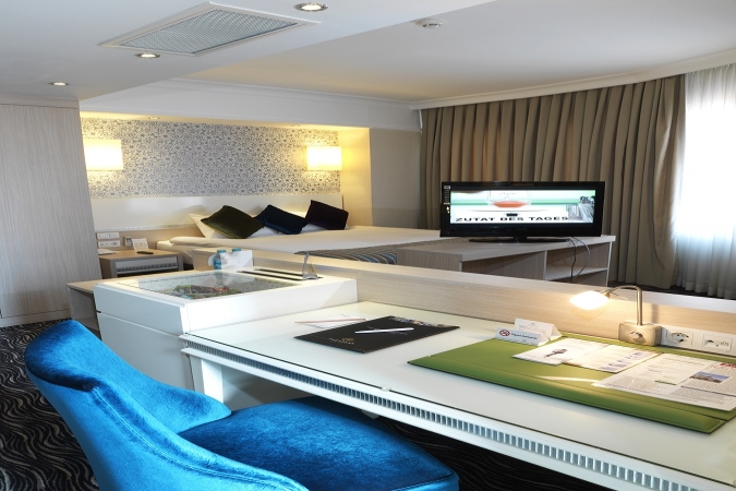 Özgün tasarımlı 3 adet corner odamızda, köşe konumunda çift kişilik yatak ve hidromasajlı küvet ile muhteşem bir konaklama yaşayacaksınız. Corner odamızda çalışma masası, dijital yayın 82 ekran LCD TV, hızlı internet hizmeti ve self kasa mevcuttur. Çay ve kahve hazırlamak isterseniz su ısıtıcı ve çay seti, ayrıca tüm odalarımızda olduğu gibi saç kurutma makinası, yastık menüsü, non-alergic ve ortopedik yataklar, özel dokuma pamuk saten nevresim takımı, özel üretim koltuk, seccade, kıble yönlendirmesi, klima, çalışma masası, sesi önlemek için ses izolasyonlu cam bulunmaktadır