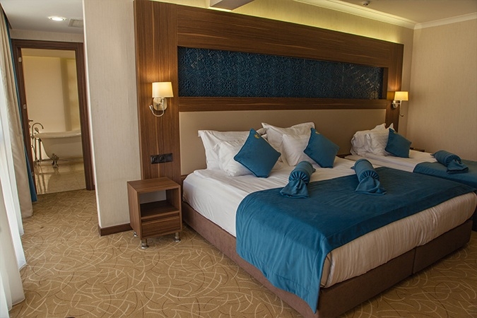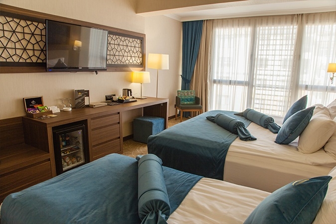 Aile odalarımız çocuklarınızla birlikte ya da 3 kişilik konaklamalar için rahatınız ve tüm ihtiyaçlarınız göz önünde bulundurularak tasarlanmıştır. Aile odalarında çift kişilik ve tek kişilik 2 yatak bulunmaktadır. Odalarımızdaki televizyonlarda bütün kanalları izleyebilir, hızlı internet hizmetimizden ücretsiz faydalandıktan sonra laptoplarınızı güven içerisinde self kasalara bırakabilirsiniz. Çay ve kahve için sus ısıtıcı ve çay sepetlerinden faydalanabilirsiniz. Ayrıca tüm odalarımızda olduğu gibi aile odalarımızda da saç kurutma makinası, yastık menüsü, non-alergic ve ortopedik yataklar, özel dokuma pamuk saten nevresim takımı, özel üretim koltuk, seccade, kıble yönlendirmesi, klima, çalışma masası, banyonuzda victoran kuvet veayrıca duş bulunmaktadır.