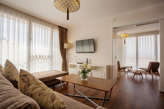 Modern tasarım, konfor ve geniş şehir manzarasının müthiş birleşimi olan ve rahatınız için özel olarak seçilen kanepeler ve büyük arkalıklı sandalyeler, arkanıza yaslanıp LCD televizyonunuzda film keyfi yapmak için idealdir. Ayrıca ferah banyolarında sıra yağmur duş başlıklı geniş duş bulunmaktadır.